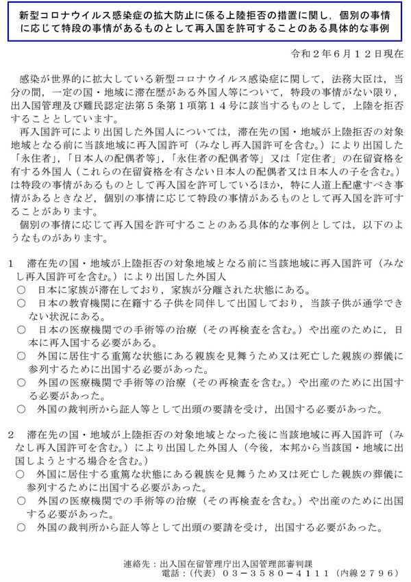 所在國被列入禁止入境的國家和地區(qū)對象之后(4月3日后)離開日本的外國人,根據(jù)以下理由可以申請入境。